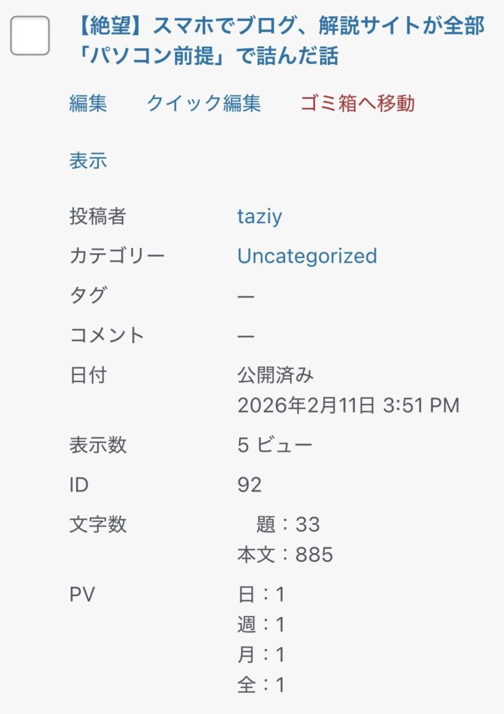正直に言うと、この数字が「自分自身が確認のために見た分」なのか、それとも「誰かが見てくれた分」なのか、今の私には判別すらつきません。